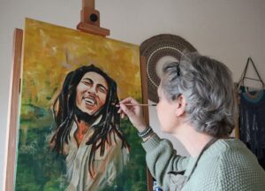 Ik ben creatief op vele vlakken. Al in mijn jonge jaren was ik graag creatief bezig. Vooral met tekenen kon ik uren bezig zijn. Sieraden maken, knutselen noem maar op. Vakken als tekenen en handvaardigheid waren dan ook op school favoriet. Jaren terug weer opnieuw begonnen met sieraden maken. Daarnaast ook het macramé weer opgepakt. Toen ik een paar jaar terug werd gevraagd of ik een portret van een overleden hond in een macraméhanger kon verwerken is mijn grote liefde voor schilderen en tekenen weer opnieuw aangewakkerd.